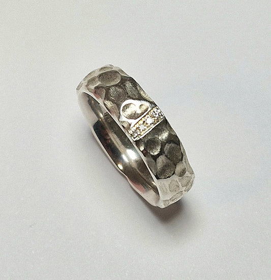 Silberring Erdkruste Struktur mit Diamant – 5 mm, geschwärzt