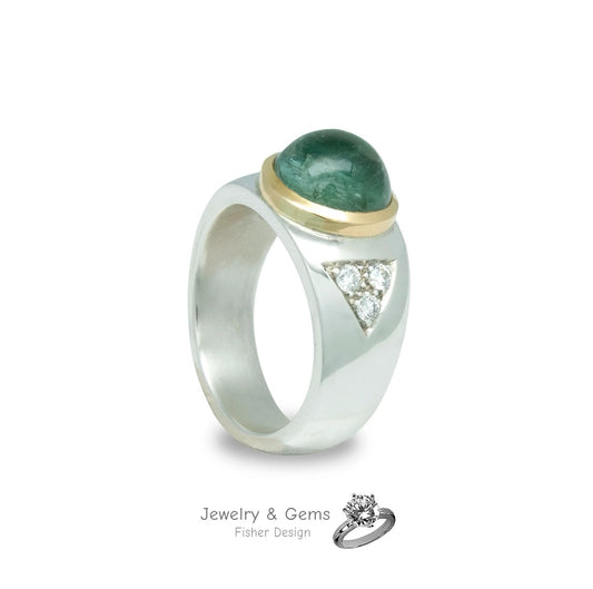 Turmalin Ring mit 6 Brillanten korngefasst im Dreieck