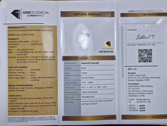 Smaragd 1.03ct rund – GCI zertifiziert