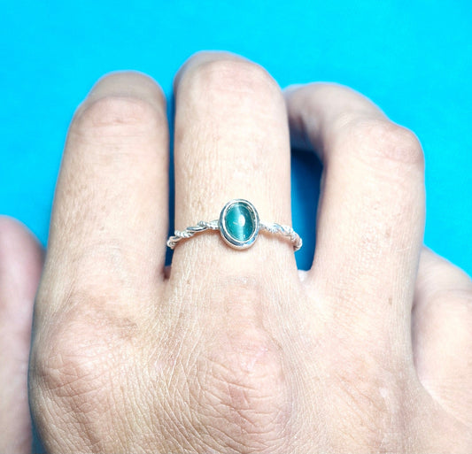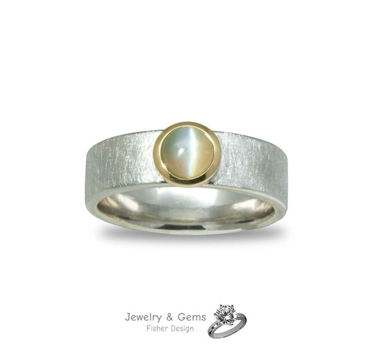 Bague oeil de chat chrysobéryl en argent avec monture en or jaune 750