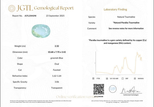 Paraiba Turmalin 2.32ct oval, grünlich-blau, JGTL Zertifikat