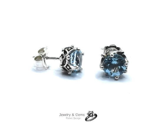 Boucles d'oreilles clous topaze 5mm. (bleu de Londres)