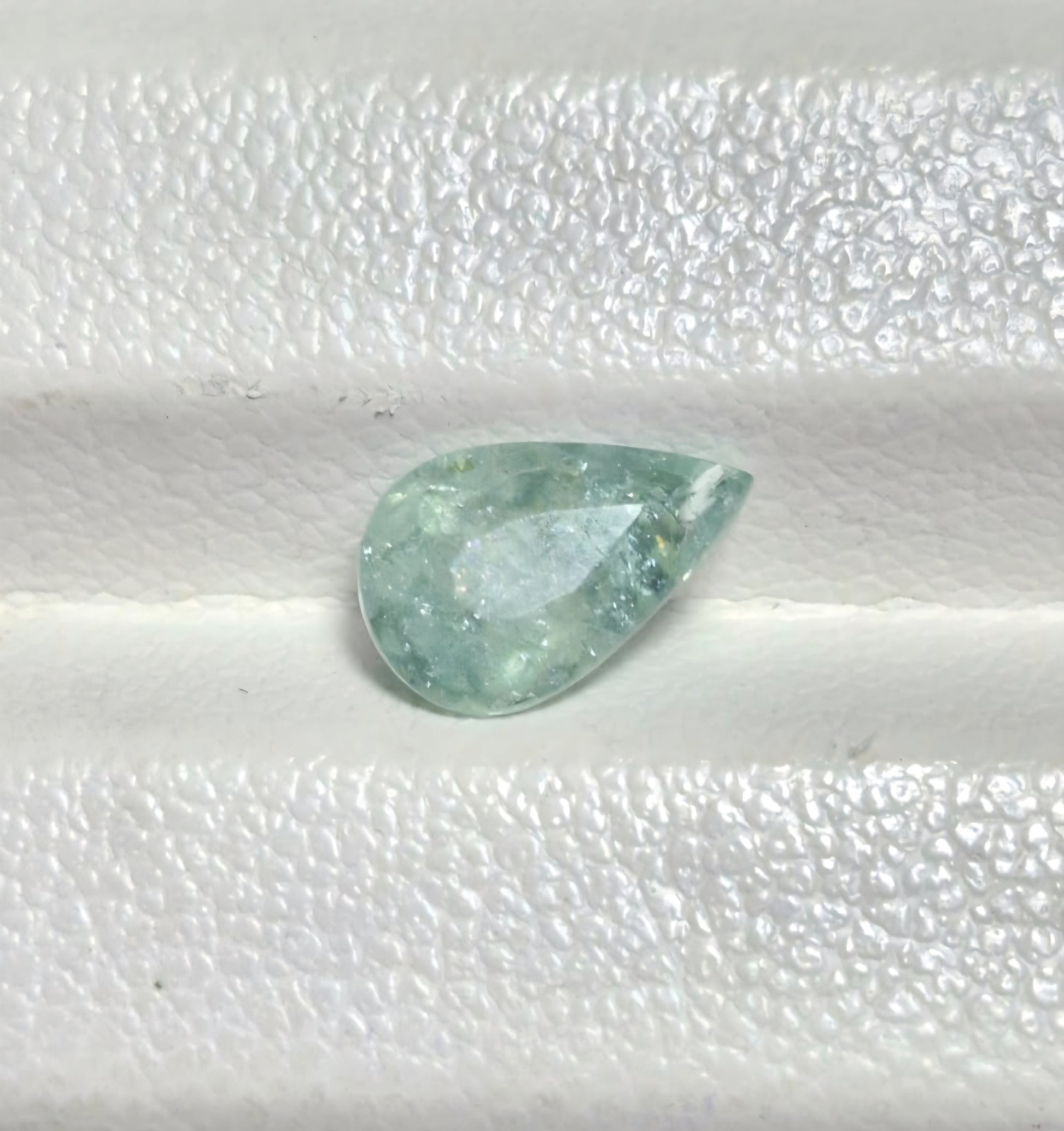 Dieser Paraiba Turmalin überzeugt durch seine seltene, intensive bläulich-grüne Farbe und seine elegante Tropfenform. Der Edelstein stammt aus Mosambique und ist natürlich sowie unbehandelt, was ihn besonders wertvoll und begehrt macht.